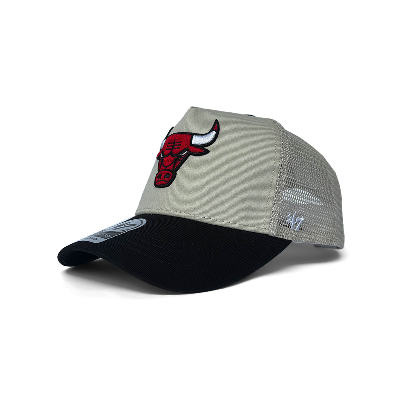 Stay classic with the ’47 Chicago Bulls Clean Up Two Tone Trucker Cap in cream and black. Featuring a bold Bulls logo, breathable mesh back, and curved visor for everyday comfort and style. Perfect for game day or casual streetwear.