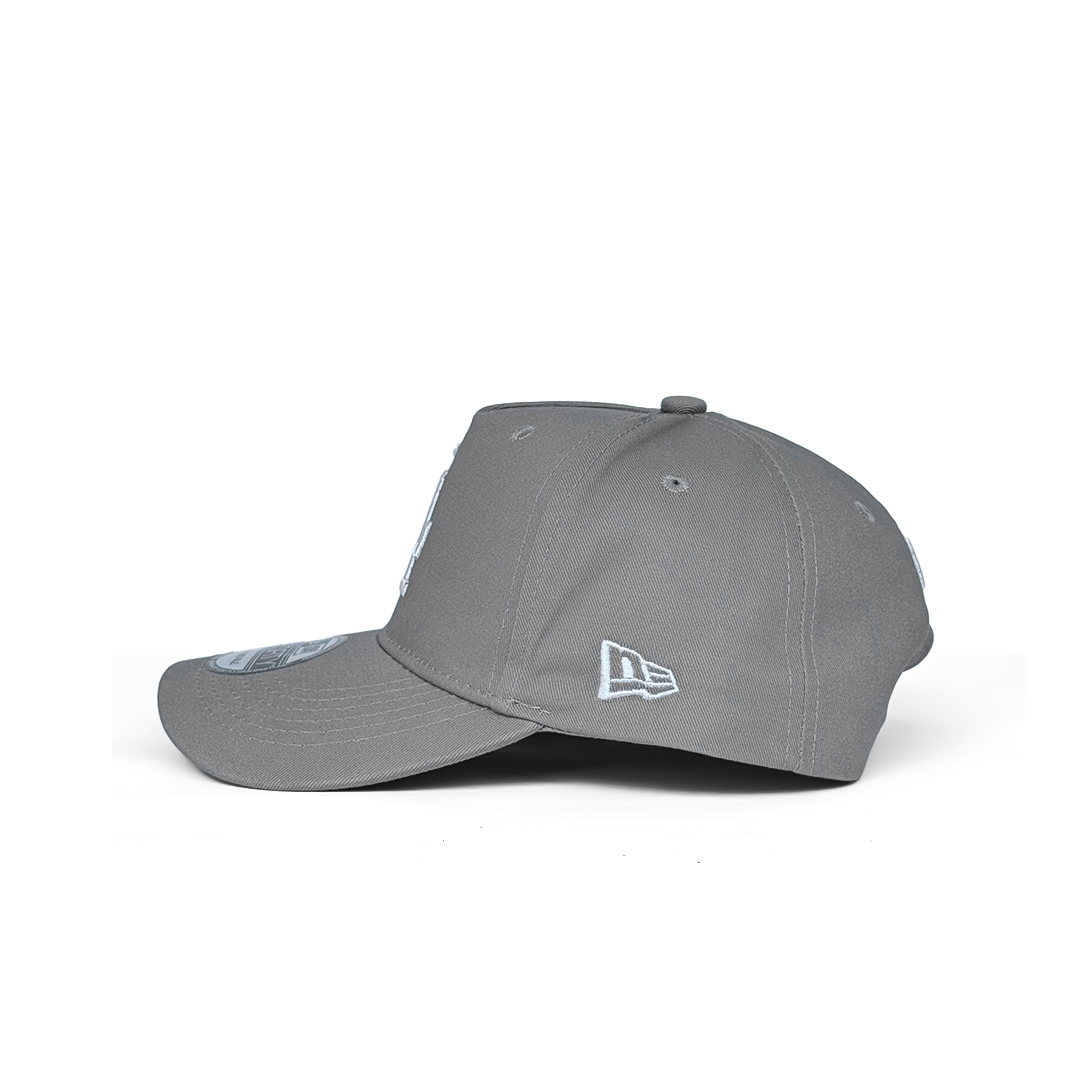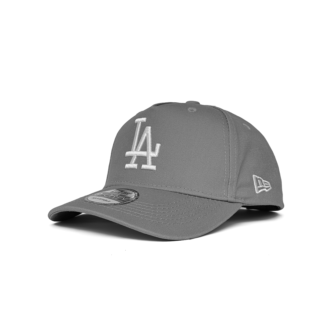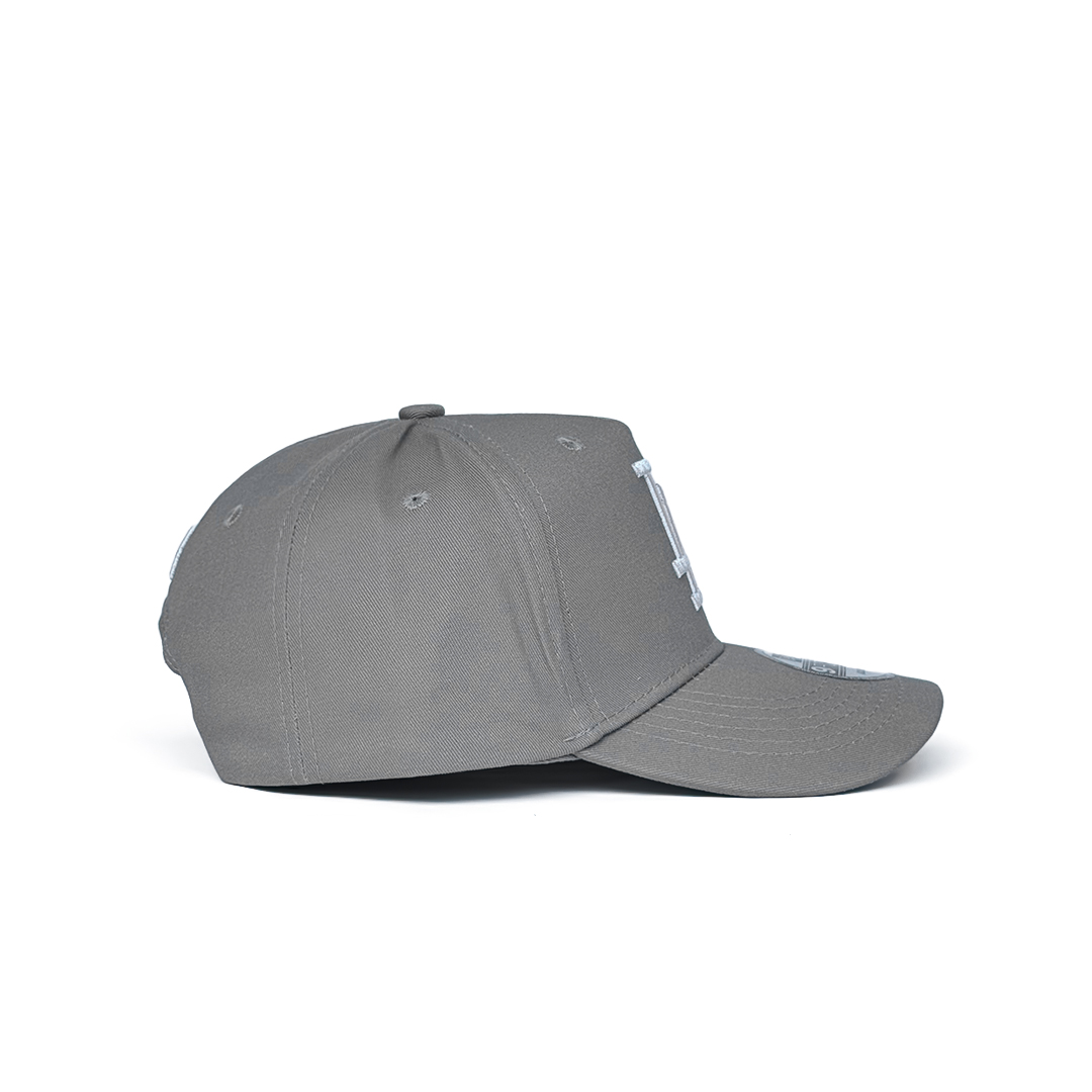 Clean, versatile, and effortlessly cool. This Essential Grey A-Frame features a soft grey crown and visor for a sleek, monochromatic look. The iconic LA logo is embroidered in crisp white, providing a sharp contrast. With its signature high-profile pinched crown and adjustable snapback, it offers a modern, structured silhouette that pairs with any outfit. Neutral tones, major league style.
