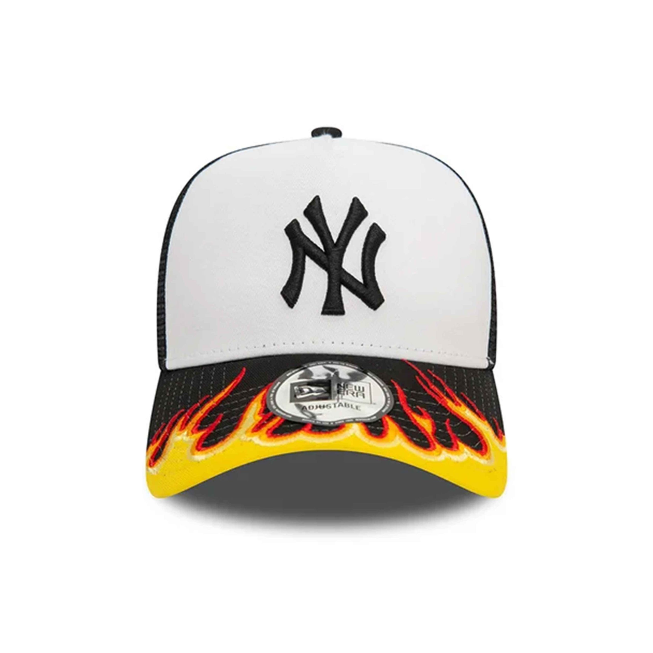 Turn up the heat with this NY Yankees flame trucker cap. Featuring a bold flame visor, mesh back, and structured crown, it’s built for standout streetwear.