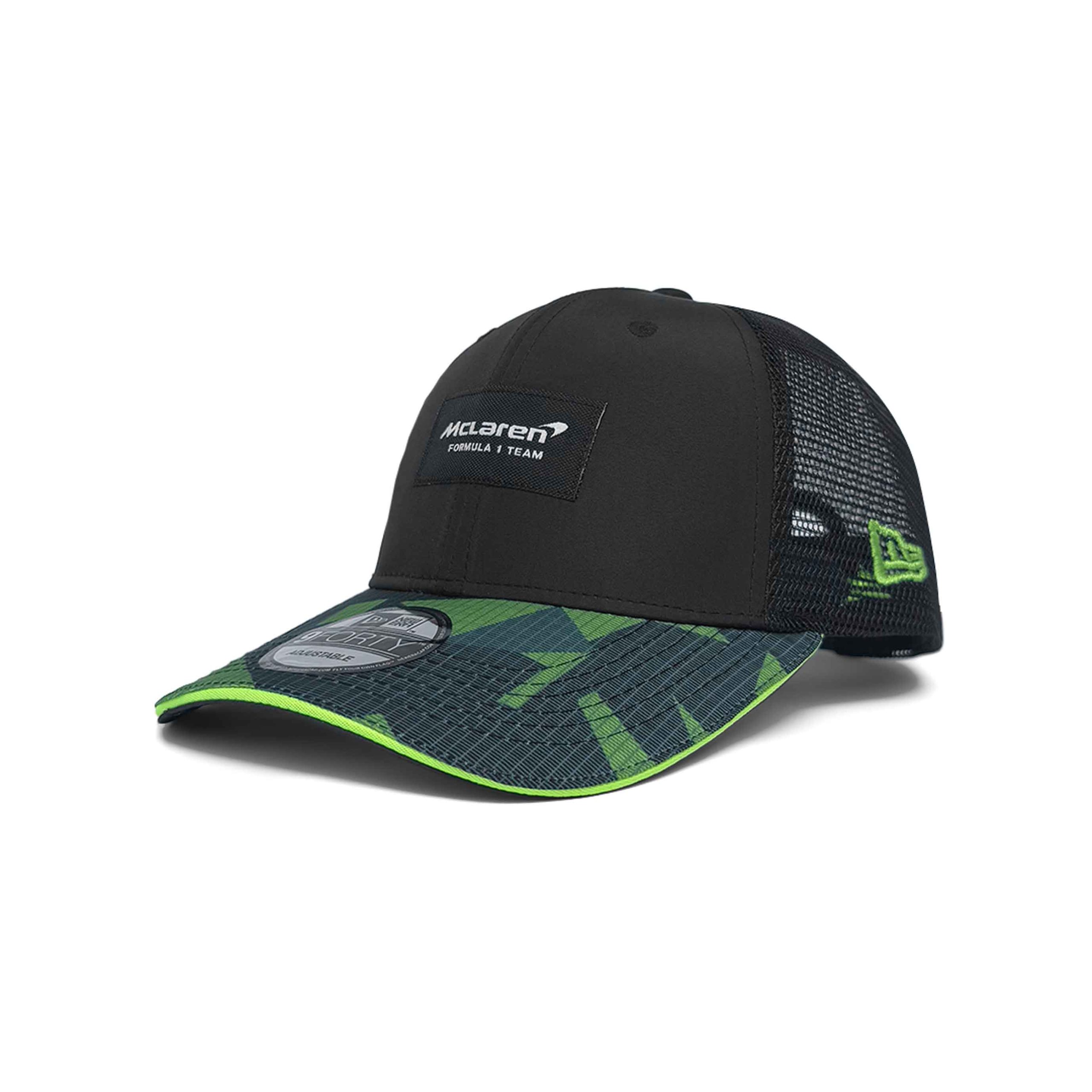 Show your support for McLaren and Lando Norris with the New Era 9FORTY Geo Precurve Trucker. Featuring a bold black and camo design, breathable mesh panels, and the iconic McLaren F1 branding, this cap delivers standout style on and off the track.